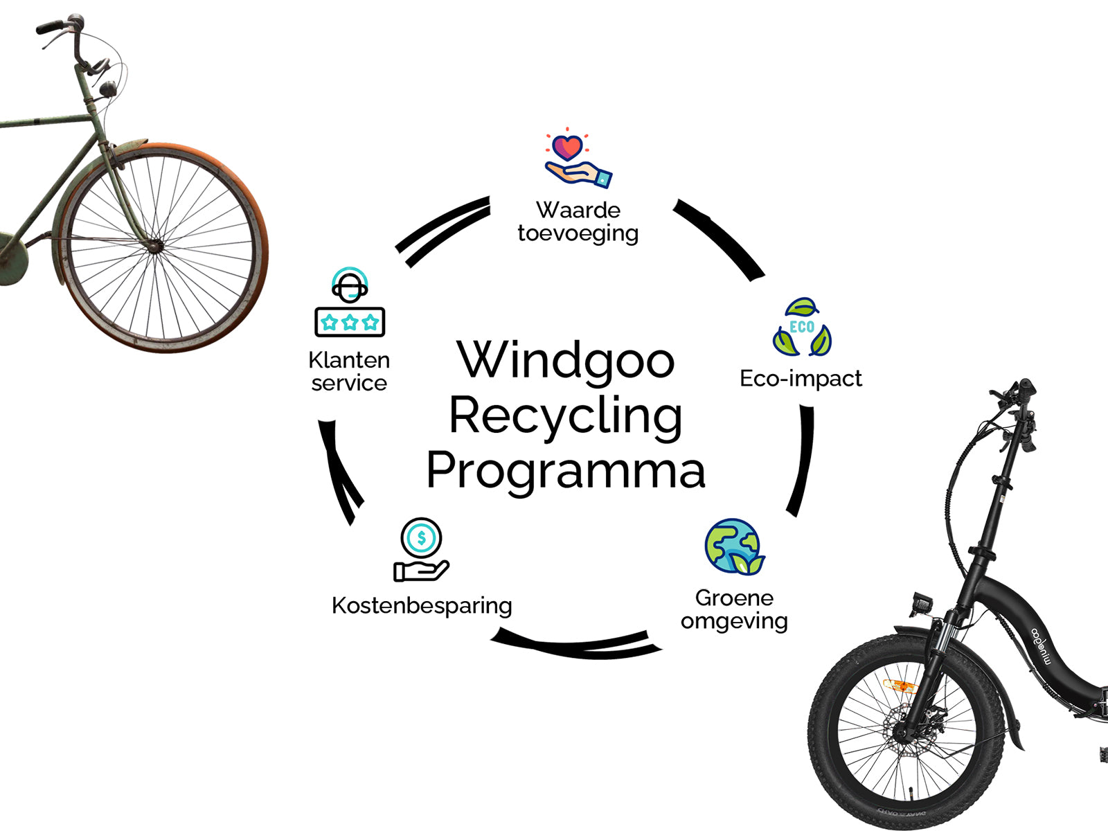 Door uw Windgoo-fiets te recyclen, draagt ​​u bij aan een gezondere samenleving en ondersteunt u de missie voor een schoner, duurzamer milieu. Uw deelname vermindert niet alleen de hoeveelheid afval, maar bevordert ook milieuvriendelijke praktijken, waardoor een betere toekomst voor iedereen wordt gecreëerd.